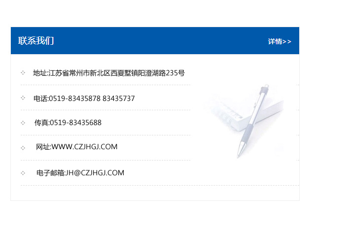 地址:常州市新北區(qū)友邦商務(wù)大廈1幢16、17層  電話:0519-85101652  傳真:0519-85112595  郵編:213022  網(wǎng)址:www_cz-jiayue_cn.shjieji.com  郵箱:xiajifengaa@163.com